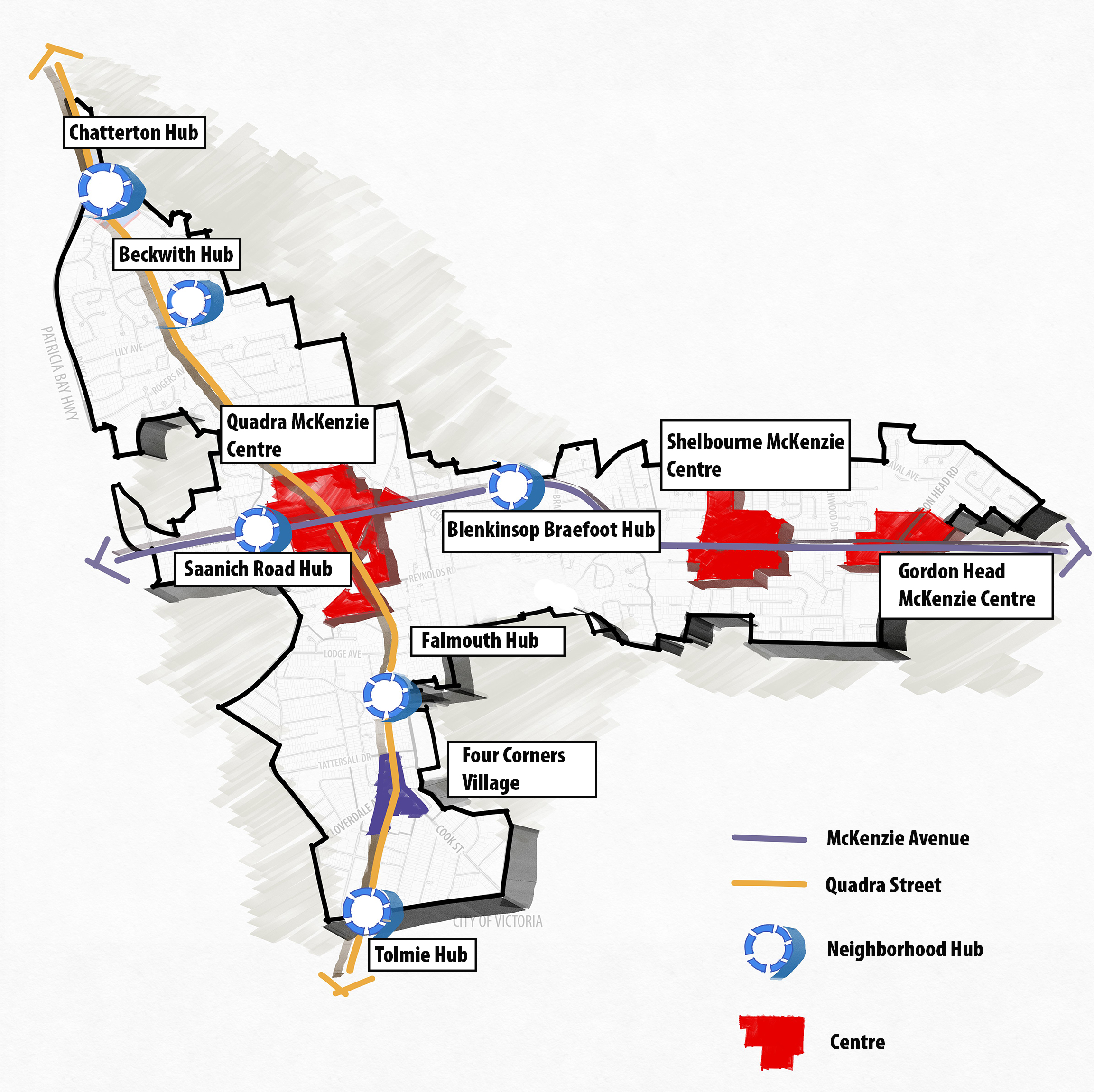 The Official Community Plan is a District-wide document that sets out a long-term vision for the community and guides growth and change in Saanich. The OCP works together with other plans and several of the core concepts introduced in the newly-adopted OCP will be further implemented through the Quadra McKenzie Study.