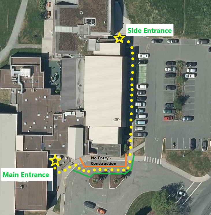 Contruction: Please note that the main entrance of the Arts and Rec Centre is currently under construction! There will be two alternate ways to get into the building.