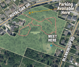 Limited parking is available off Royal Oak Drive; carpooling or alternative transportation is recommended.