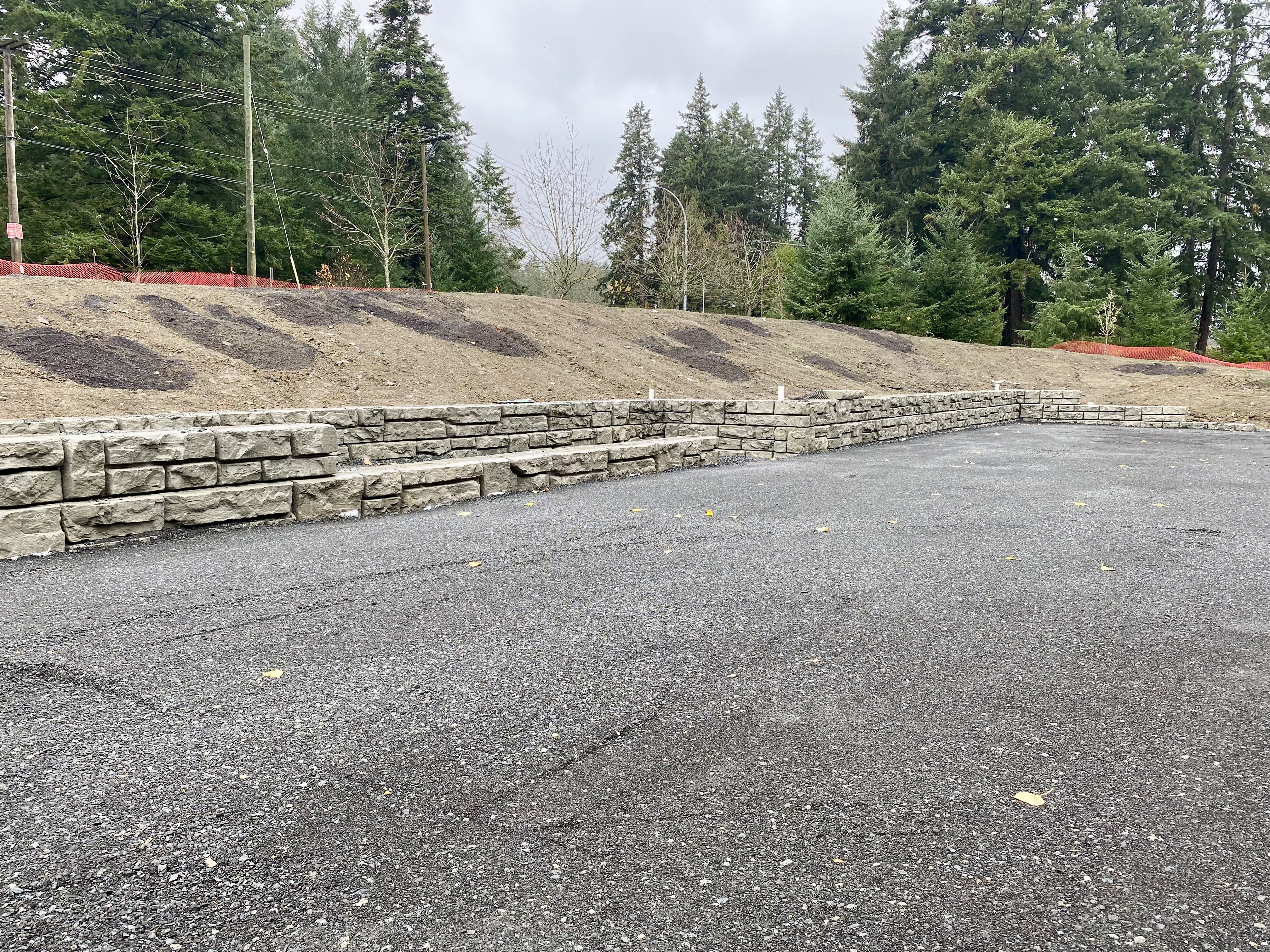 Tennis court base with retaining wall.