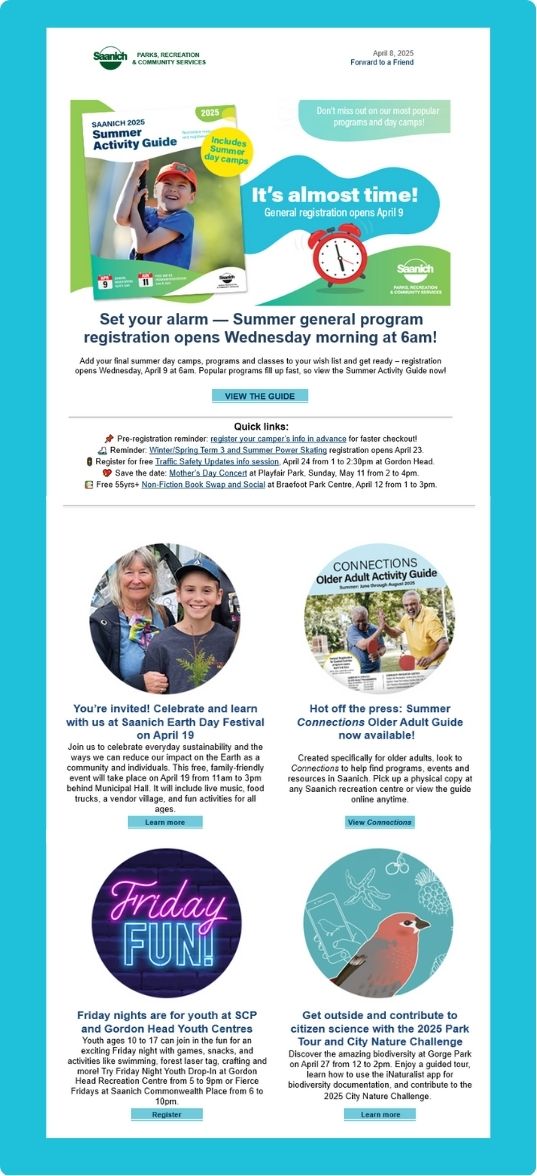 Sign up for the Saanich Parks, Recreation and Community Services E-Newsletter today!