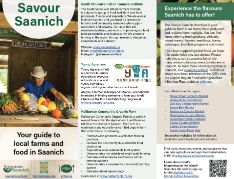 Also, check out our Savour Saanich Agriculture page to find a brochure with all the fresh local farms, food producers and regional farm markets. You can find farms offering fresh produce, ethically raised meats, flowers, seedlings, honey, beverages, food box programs and more!