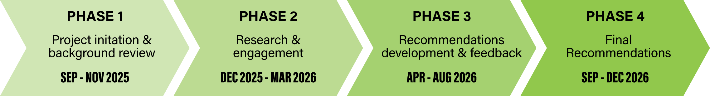 • September 2025 – Phase 1 initiated: Work began on the Background Technical Report, and staff completed the Communications Plan and Engagement Strategy.