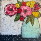 Much of my art work would be described as abstract collage, but I also love to create portraits. I love to work with paper and also make cards and produce journals