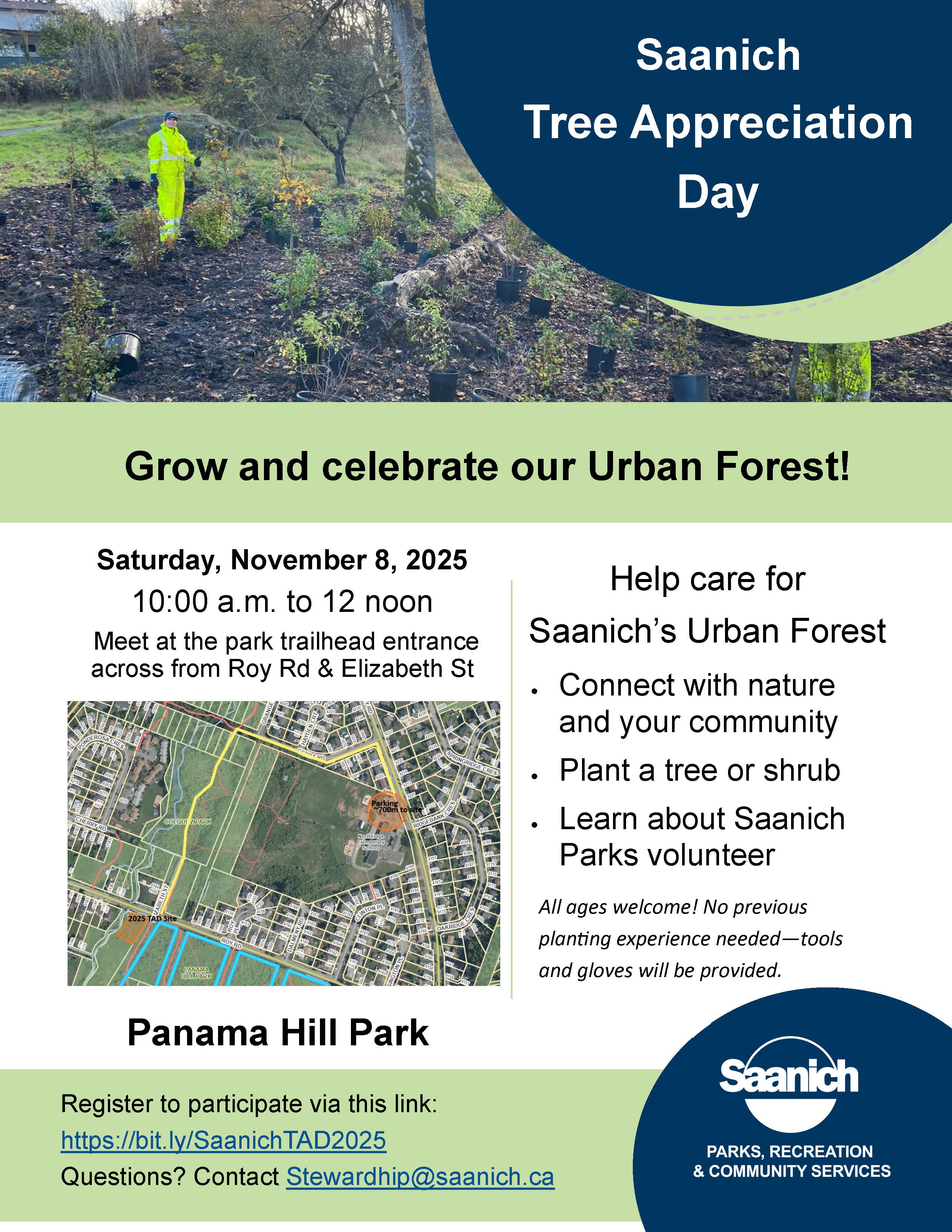 Join us to plant a tree or shrub in celebration of Tree Appreciation Day and help care for Saanich's urban forest while connecting with nature and your community.