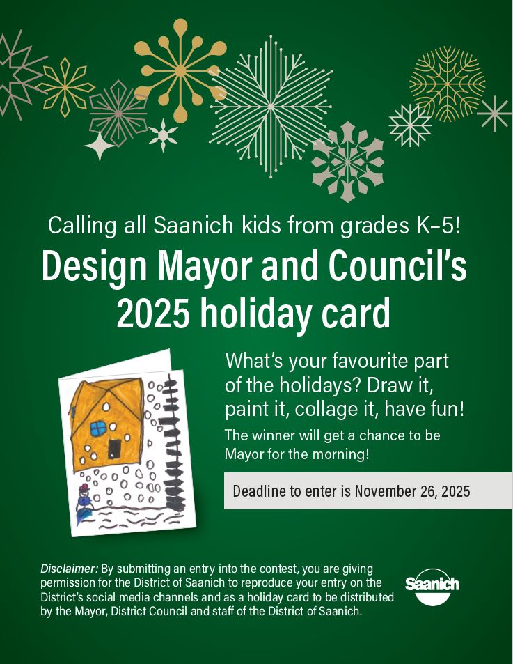 Saanich, BC – Yule never believe it – it’s that time of year already! Grab your markers and sharpen those pencil crayons, it’s time for Mayor and Council’s 2025 Holiday Card contest.